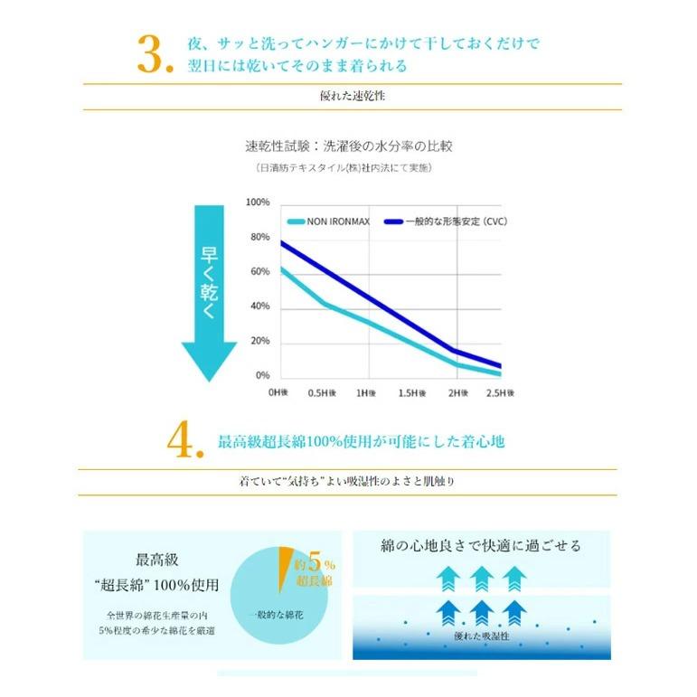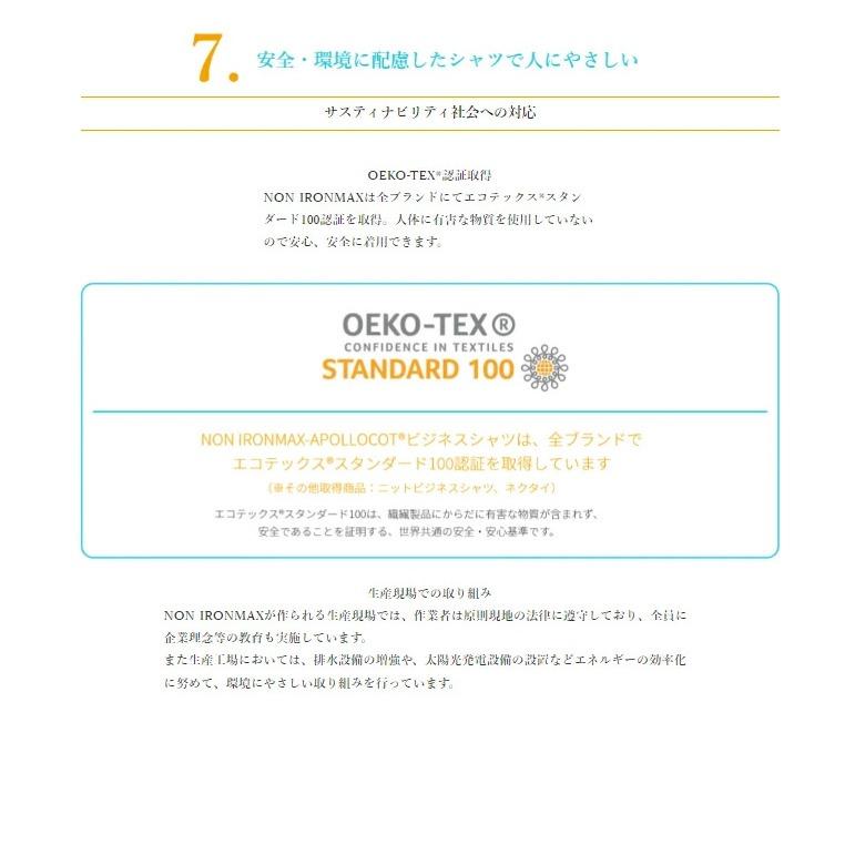 NON IRONMAX (形態安定加工)、ストレッチ、防汚加工、制菌加工、OEKO-TEX