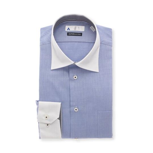 AOYAMA 【洋服の青山】ワイシャツ メンズ スリム 春夏 秋冬 オールシーズン ブルー 青 クレリック ワイドカラー 長袖 切替生地 形態安定 シワになりにくい ビジネス